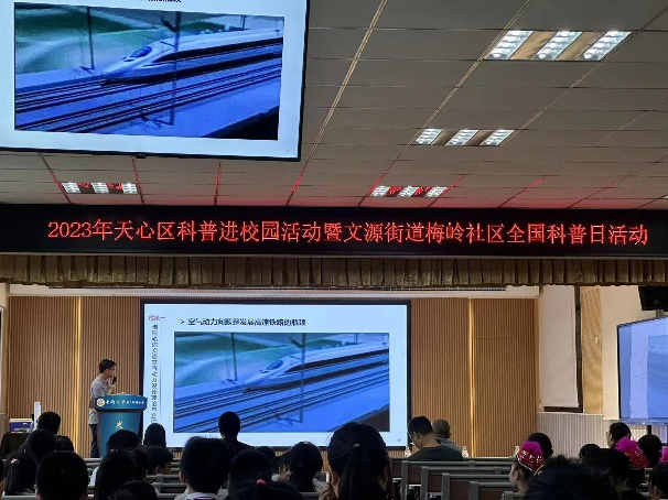 高速列车研究中心周伟用通俗易懂的语言,结合视频向大家展示了中国高铁经历的四个主要阶段,讲述中国铁路从“追赶者”到“领跑者”的身份转变,强调用科技擦亮“中国速度”这张亮丽名片的重要性,在青少年的心中种下科技的种子,现场热血沸腾。【摘自红网时刻报道】