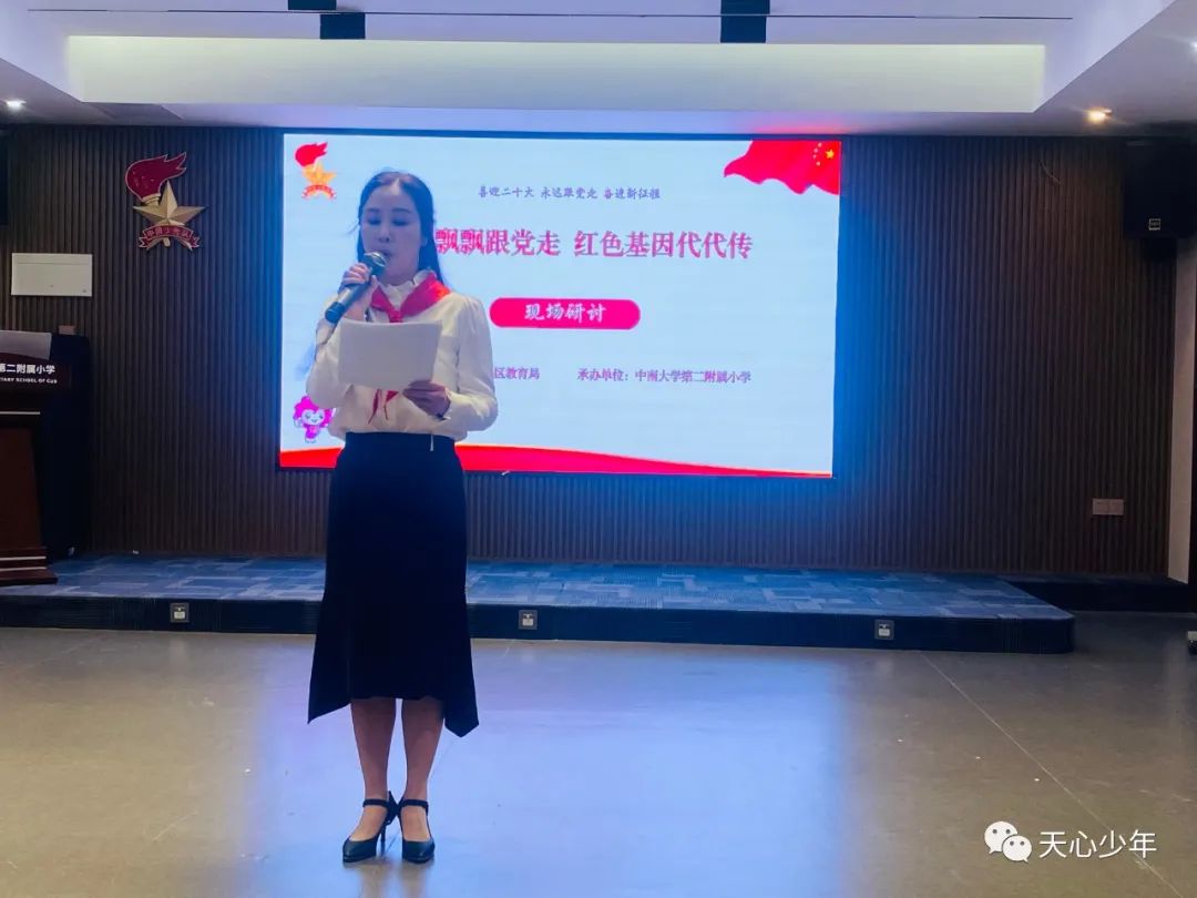习近平总书记曾深刻地指出:“少年强则国强。当代中国少年儿童既是实现第一个百年奋斗目标的经历者、见证者,更是实现第二个百年奋斗目标、建设社会主义现代化强国的生力军。”队旗飘飘跟党走,天心区辅导员团队将牢记党与国家赋予的使命,努力谱写立德树人新篇章。让红色成为少先队员们的精神底色,让红色基因代代传承,引领塑造一批批有理想、有本领、有担当的时代新人成为共产主义事业的接班人!