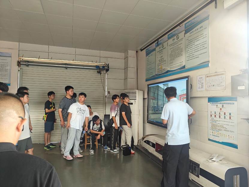 的发展概况和悠久的发展历史,对学院在轨道交通领域的成就有了初步认识。随后,志愿者史梓含带领同学们走进两个实验室进行深入讲解。