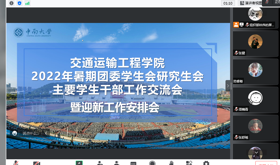 2022年8月24日下午3点,必赢官网 2022年暑期分团委、学生会、研究生会主要学生干部工作交流会暨迎新工作安排会于线上顺利举行,会议由分团委组织部林伟主持,团委副书记张健老师和郑繁简老师、2022级...