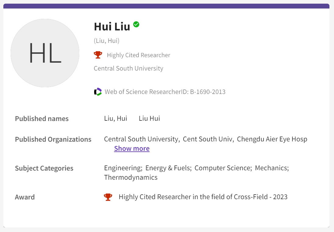 部“中青年科技创新领军人才”、中国工程院“中国工程前沿杰出青年学者”等,连续多年入选爱思唯尔中国高被引学者、斯坦福大学全球2%顶级科学家榜单(全球排名前0.065%)。
