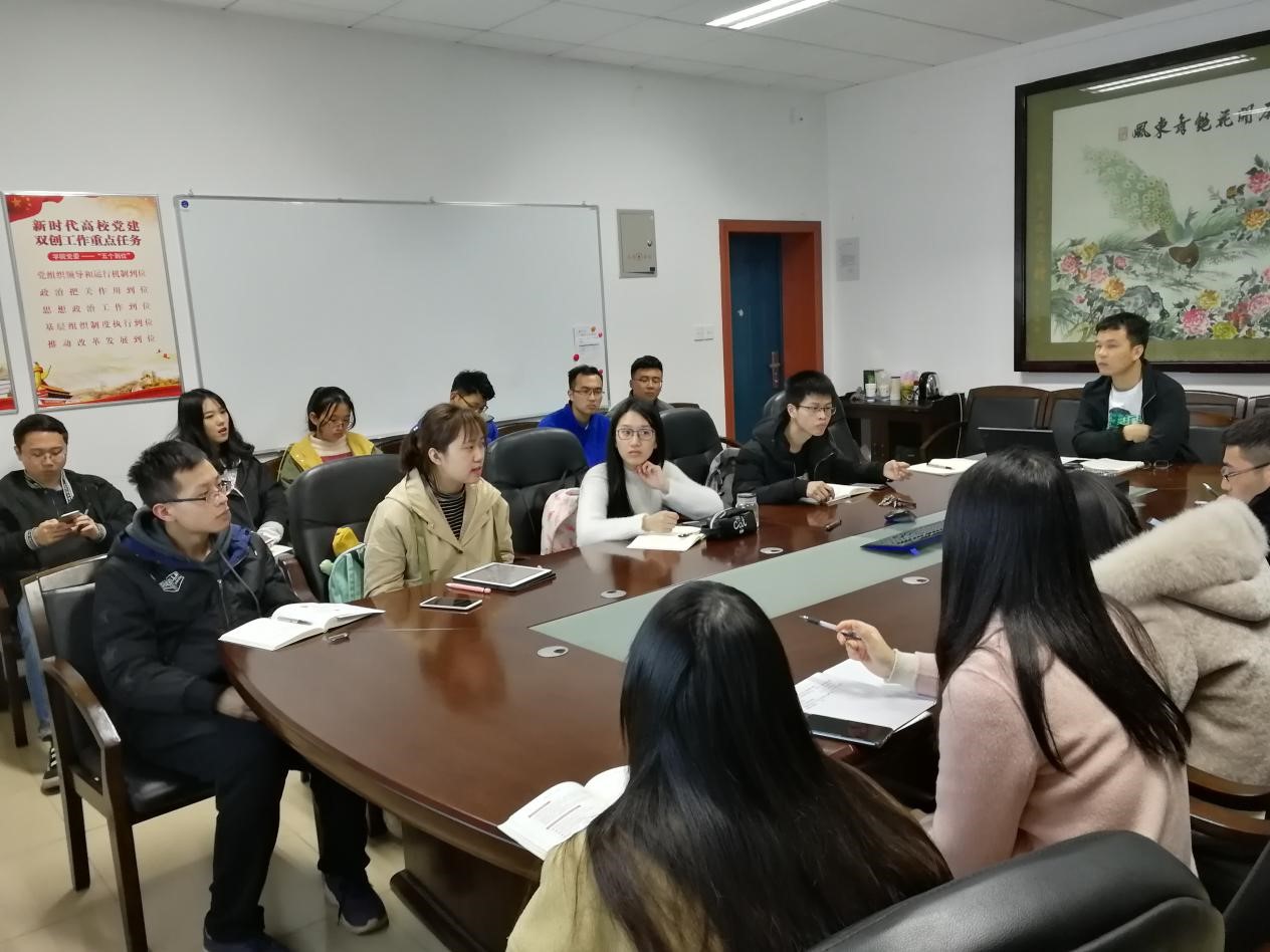 会议伊始,曹书记明确了此次会议的主要任务——讨论支部年度工作计划初稿,并将其完善落实。曹书记指出,支部年度计划的制定应从以下两点出发:一为全员参与支部工作,在建设支部的过程中提升自我,增强党性修养;二是加强对预备党员的培养,发挥支部“传、帮、带”的作用,提前应对支部组织结构的变化。此外,支部还明确了年度计划工作开展的主要思路,支部建设需贯彻落实学校必赢亚洲 的政策,围绕“五化建设”的方针,将“书香支部”建设作为贯穿全年的重点工作,持续推进特色支部创建工作;支部同时应把握好全年重要时间节点,着重开展以“实践、感恩、传承”为主题的毕业生党员系列活动,做好支部“交接棒”的工作。