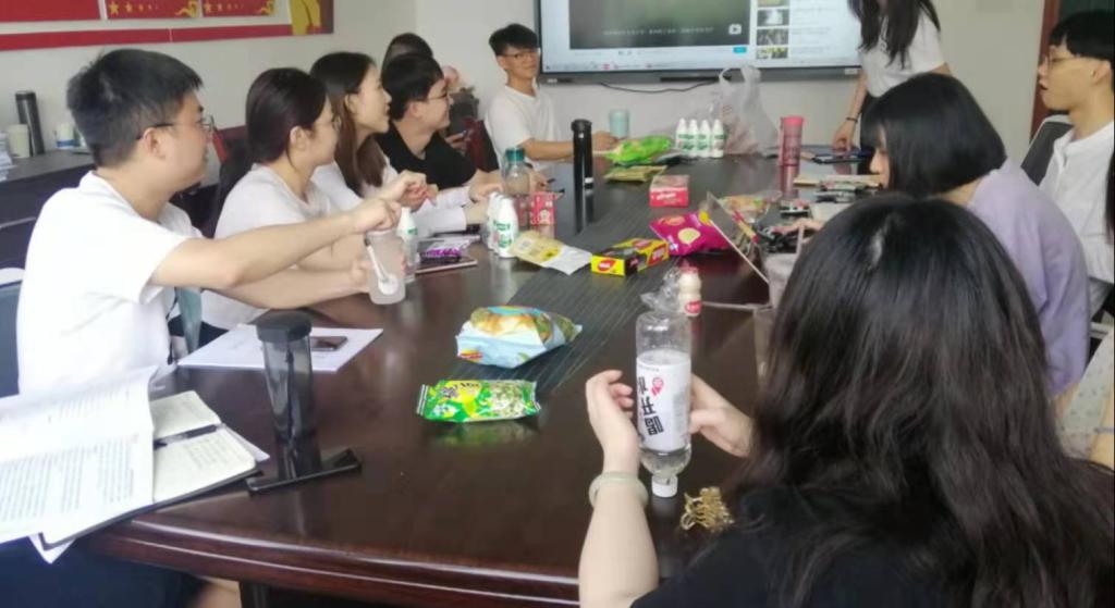 接着,研一研二的党员同志发表对毕业生师兄师姐的祝福。毛妮同志回忆对每位毕业生党员的初印象,并表示各位同志都是非常优秀且有才能的人。周果同志感谢所有师兄师姐在生活上以及学术上给予的帮助,祝愿她们前程似锦。支部书记赵苛欣表示感谢大家对这学期工作的配合,也表示对有些活动因为时间冲突而搁置的遗憾,祝愿毕业生党员们未来可期,做对社会有贡献的人。