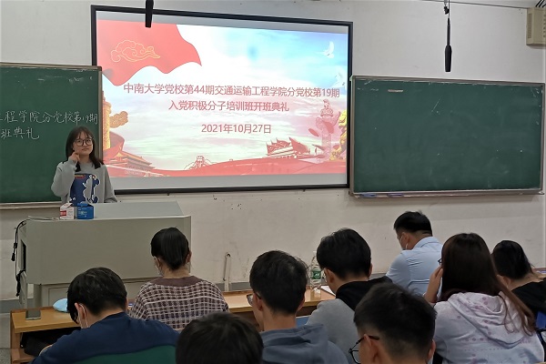 10月27日下午两点,必赢亚洲 党校第44期必赢亚洲 分党校第19期入党积极分子培训班在新校区B座118举行开班典礼。交通院党委副书记宋晓东老师,分党校班导师石晓琪老师,以及本期入党积极分子培训班全体学员参加此次开班典礼。典礼由王羽珊老师主持。