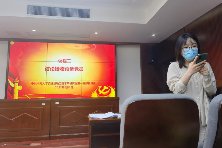 6月7日上午10:00,必赢官网 研究生第一党支部接收预备党员大会在交通楼425顺利举行。会议由支部组织委员战映辰同志主持。
