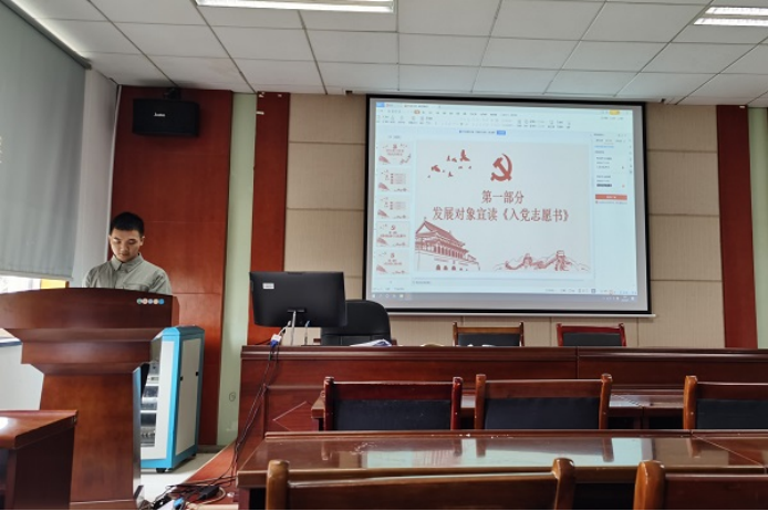 会议伊始,全体起立,奏唱国歌。由李欣钰同志介绍本次会议流程及要求,随后蔡瑞军、成灿慧与刘哲霖三名发展对象依次宣读《入党志愿书》,分别详细地介绍了个人基本情况。汇报结束后,入党介绍人分别阐述了三位发展对象的基本情况及考察意见,参会党员同志对该同志能否成为预备党员充分讨论发表意见,刘京同志代表支部委员会报告三位同志的审查情况。经大会表决,赞成人数超过应到会有表决权的正式党员的半数,支部同意接受三名同志为中共预备党员。