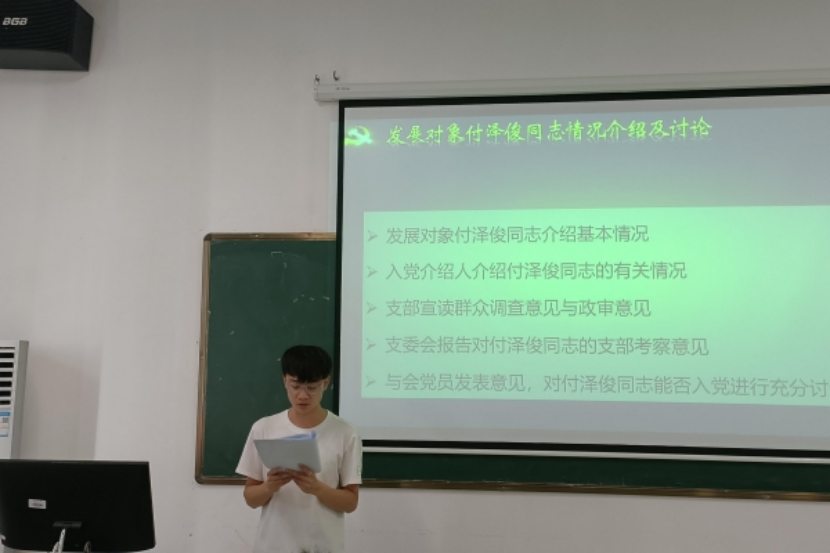 大会伊始,郭智同志简单介绍了会议流程及要求。紧接着,谢叶萱、傅卿云、刘文静、付泽俊、王若兰、童韵雯、雷子健等七位发展对象依次宣读入党志愿书。七位同志从自身实际出发,详细介绍了个人基本情况以及对党的认识,表达了自己渴望成为一名共产党员的愿望与决心,恳请党组织在实践中考察和检验。各位同志汇报个人情况后,入党介绍人对其培养考察和政治表现进行介绍,支部宣读群众调查意见与政审意见。之后,支委会报告对七位同志的支部考察意见,与会党员对相关同志能否成为预备党员发表了意见。最后,经与会正式党员无记名投票,七位发展对象均获全票通过,支部大会宣布了接收七位发展对象为预备党员的决议。