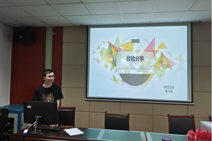 分享完毕后,由四位优秀的毕业生党员同志为支部同志们分享个人读研期间的一些学习经验。余澄庆同志为同志们推荐了一些优秀的论文期刊,并提醒同志们要劳逸结合,提高效率,尽早开始准备论文的研究创作。邹涌同志为同志们分享了许多出国留学的经验,以及留学要做的准备工作。董书勤同志主要向同志们分享了参与招聘和就业时需要准备的一些内容,介绍了工作的一些相关领域的知识。最后,王勇同志分享了一些关于面试时需要准备的问题。听完毕业生党员同志们热心的分享后,在场的同志们都感受颇深,受益良多。