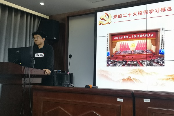 首先,刘家忱同志围绕“党的二十大会议精神——以中国式现代化全面推进中华民族伟大复兴”给同志们上了一堂党课,主要内容包括党的二十大报告学习概览,以及如何以中国式现代化全面推进中华民族伟大复兴。