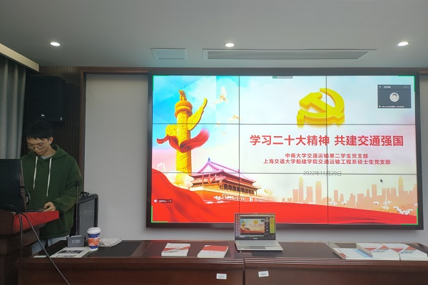 11月29日下午15:00,必赢亚洲 必赢亚洲 第二学生党支部联合上海交通大学船建必赢亚洲 必赢亚洲 工程系硕士生党支部在交通楼425开展“学习二十大精神,共建交通强国”主题党日活动,会议由刘思序同志主持。此次党日活动通过专题研讨、党的二十大知识竞赛、微党课等形式,组织支部党员深入学习贯彻党的二十大精神。