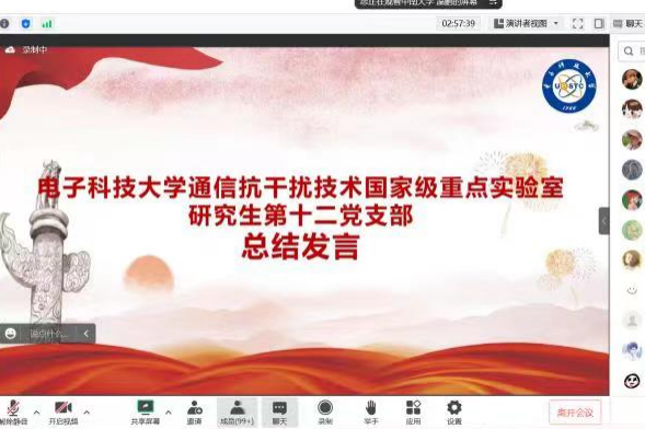 活动最后,电子科技大学通信抗干扰技术国家级重点实验室研究生第十二党支部书记杨诗铭同志对本次党建活动进行总结发言。他表示,作为学生党员,应该将汲取的真理力量运用到学习实践中去,积极夯实专业基础,不断进行自我提升,坚定不移听党话、跟党走,成长为有理想、敢担当、能吃苦、肯奋斗的新时代好青年,以实际行动向党的二十大献礼,让青春在火热实践中绽放绚丽之花!