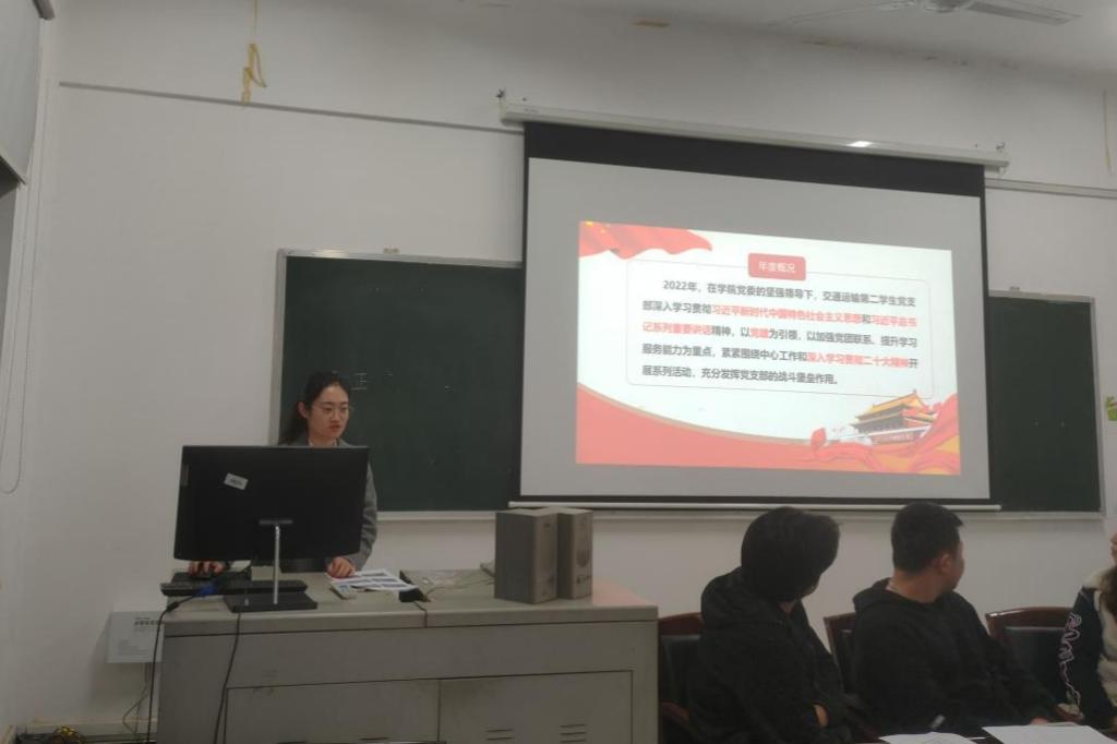 3月1日晚上19:00,必赢亚洲 第二学生党支部于铁道校区交通楼515举行了党员大会。大会分为二十大精神的专题学习、2022年度支部书记述职、批评与自我批评及民主评议党员四个议程。会议由曾怡佳同志主持。