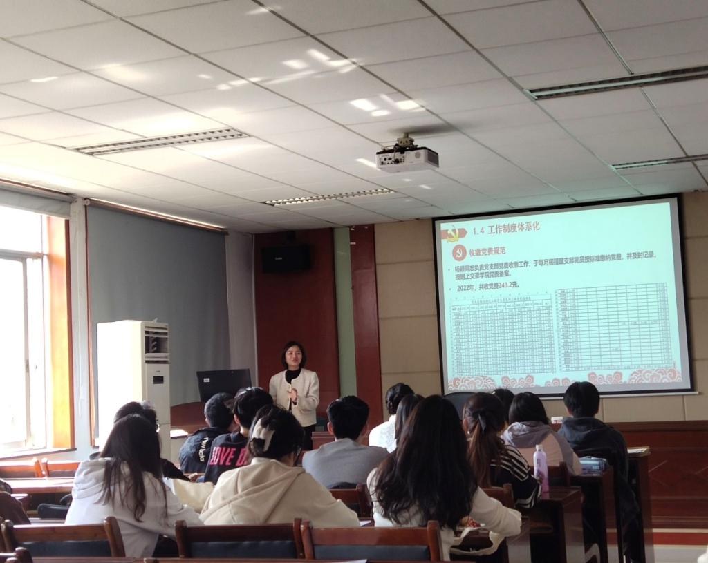 随后,支部书记张佳琪同志向全体支部党员作2022年度必赢亚洲 与物流工程学生党支部工作述职报告,重点总结了过去一年支部的“五化”建设和党员发展,并提出未来展望。她表示,2022年支部的各项工作进展顺利、成果喜人,但也针对存在的一些问题点明了改进方向:一是支部成员理论学习系统性不足,应落实落细整个学习过程;二是入党积极分子培养过程的管理有待加强,需要制定培养考察规范并强化管理;三是对党员的党性分析、日常思想变化关注较少,之后应增加组织和支部同志的谈话频次,及时跟踪支部同志的思想动态。