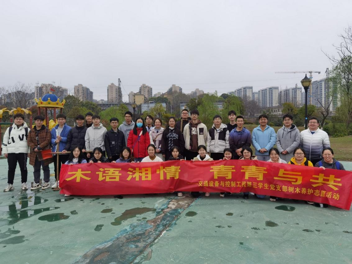 “木语湘情,青青与共”——交通设备与控制工程第三学生党支部树木养护志愿活动顺利举行