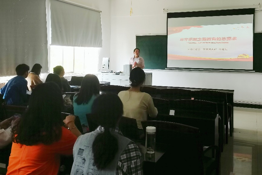 接着,石晓琪同志进行了题为“牢牢把握主题教育的总要求”的主题教育微党课。她从古田会议引入,就主题教育的由来、建党以来的党内集中教育、学习贯彻习近平新时代中国特色社会主义思想主题教育等内容展开讲解,加深了同志们对此次主题教育的理解,加强了同志们的理论武装。