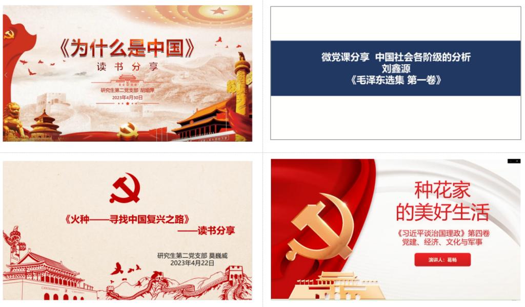 扎扎实实读原著学原文悟原理,是党的理论武装工作的优良传统。在本次主题教育中,研究生第二党支部部分党员仔细研读《中国共产党简史》、《毛泽东选集》、《习近平谈治国理政》第四卷、《干在实处 走在前列——推进浙江新发展的思考与实践》等有关书籍和材料,踊跃参与线上微党课活动,向支部全体党员展示书籍内容和心得体会。