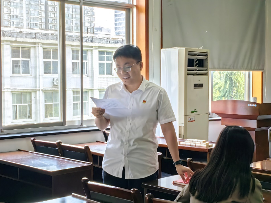 接着,支部书记刘家忱对于支部上半年的工作进行了汇报,并为毕业生党员送上寄语。刘家忱同志首先对支部上半年所获荣誉、发展党员情况及主要开展活动进行了回顾及总结,接着对毕业生党员们三年来为支部所做的努力与贡献表达了感谢,他表示支部发展与建设离不开所有党员同志们的努力与奋斗。最后刘家忱同志为各位毕业生党员送上期许,祝各位毕业生党员们前程似锦,在新的学习和工作岗位上,继续书写精彩华章。