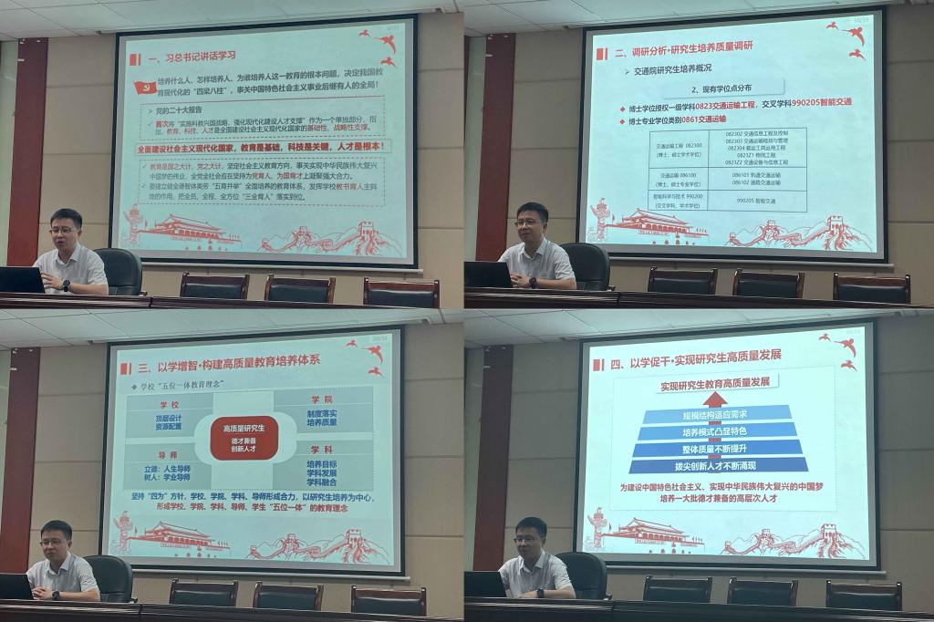 7月3日上午9:30,博士研究生第三党支部与研究生第四党支部在交通楼513开展了专题党课学习。本次党课由必赢亚洲 副院长彭勇老师讲授,主题为“以学增智,以学促干——高质量研究生培养与思考”,支部全体党员同志参与学习。