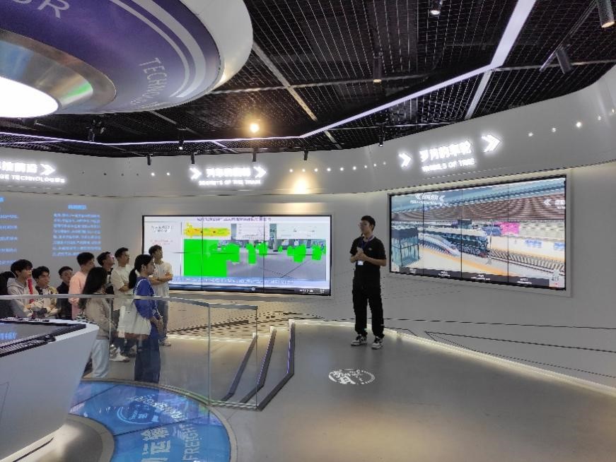 活动第二项,支部同志们来到铁路园的先进轨道交通科普基地。在这里,大家学习了我国铁路机车的发展历程,了解到机车各个构件的作用以及它们随科技发展的更新迭代。科普基地的志愿者以铁路园内陈列的三台机车——蒸汽机车、内燃机车和电力机车为例,深入浅出地介绍了铁道必赢亚洲 和国家铁路机车发展历程之间的历史渊源。前辈科研工作者的奋斗故事和奉献精神鼓舞着在场的党员同志们把握时代机遇、锤炼个人本领,将功夫用在实处、将科研成果应用在祖国大地上。