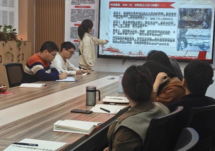 首先,第一党小组以“红军长征”为主题,深入介绍了红军长征的背景、过程、意义以及长征精神的内涵,重点聚焦湘江战役、遵义会议等重要历史事件;第二党小组详细讲述了湘江战役的背景、各方战争部署,并向大家介绍了在这场战役中英勇牺牲的革命先烈如陈树湘、韩伟,最终总结湘江战役的时代价值;第三党小组通过陈树湘等铁血英雄事迹,强调传承红色基因、学习党史对于爱国主义教育的重要性,呼吁全体党员积极学习《中华人民共和国爱国主义教育法》;第四党小组深入讨论中国化时代化的马克思主义内涵及其在中国的应用;第五党小组围绕电影《志愿军:雄兵出击》介绍抗美援朝的背景和意义。