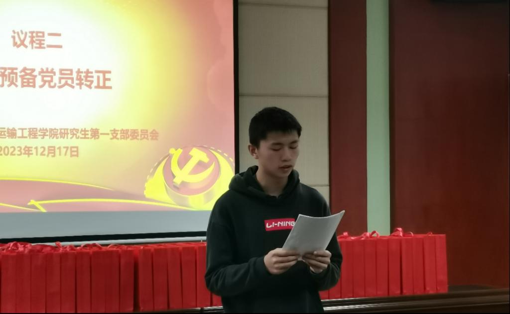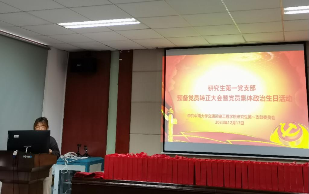 12月17日15:00,研究生第一党支部在交通楼513举行了预备党员转正大会暨党员集体“政治生日”活动。会议由支部书记马珊同志主持。