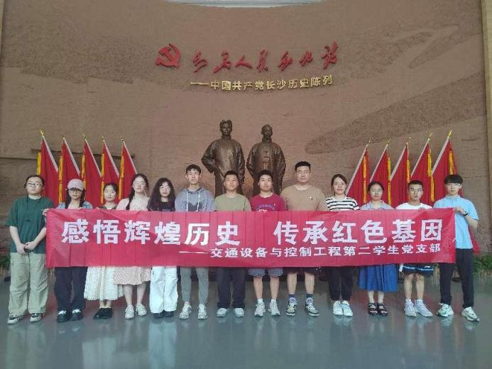 5月26日下午,交通设备与控制工程第二学生党支部举办了以“感悟辉煌历史,传承红色基因”为主题的党日活动。全体党员在支部书记的带领下参观了中国共产党长沙历史馆,重温党的光辉历程,汲取红色精神力量。