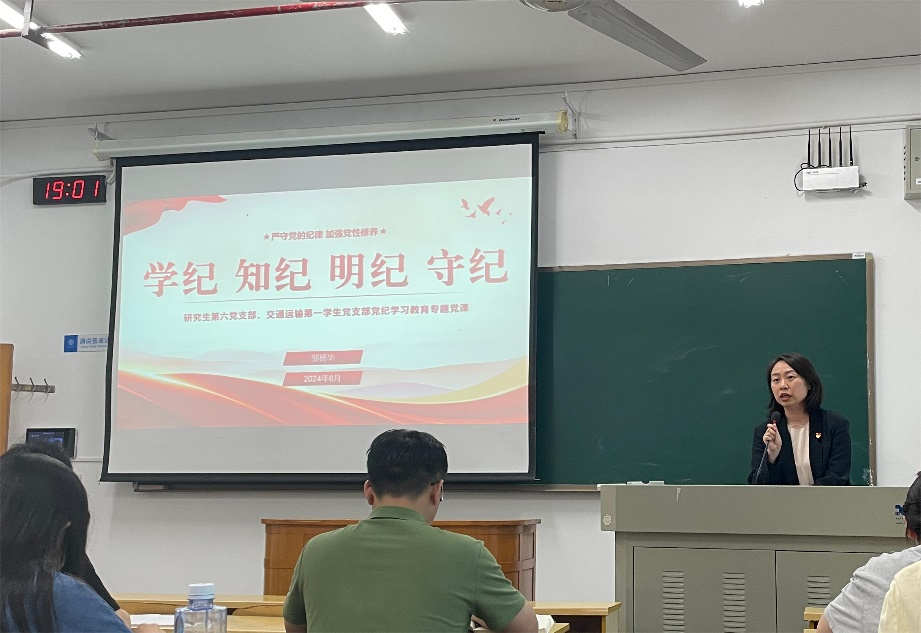 6月6日晚上,必赢亚洲 第一学生党支部联合研究生第六党支部在世纪楼主楼201开展“学纪、知纪、明纪、守纪”党纪学习教育专题党课,本次党课由必赢亚洲 综合办主任邹杨华老师讲授,研究生第六党支部周少宇同志主持,两支部全体党员共同参加学习交流。