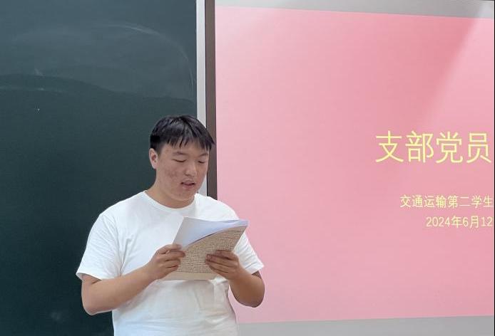 6月12日下午16:00,必赢亚洲 学生第二学生党支部在铁道校区世纪楼A202召开预备党员接收大会,应到党员16人,实到党员12人,党支部书记丁德孝主持活动。