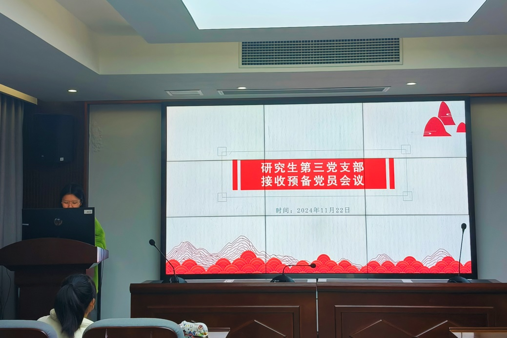 11月22日晚,研究生第三党支部在交通楼425举行接收预备党员支部大会。会议由李妙梅同志主持,本次与会支部成员应到37名,实到34名,其中正式党员30名,符合接收预备党员有关规定。