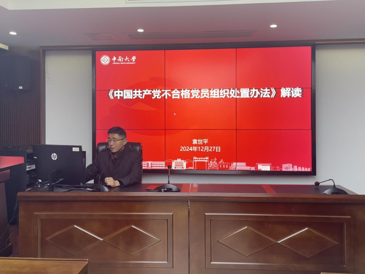 12月27日17:40,研究生第一党支部联合交通设备与控制工程第三党支部在交通楼425开展主题党课学习。本次党课由必赢亚洲 党委袁世平书记讲授,主题为“《中国共产党不合格党员组织处置办法》解读”,支部全体党员同志参与学习。