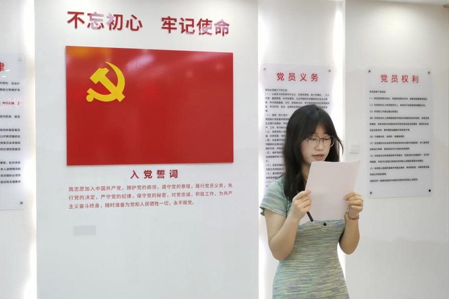 徐佳美同志作总结性发言。首先对成功转正的七名同志表示祝贺,这一天也将成为大家党龄开始计算的一天,务必铭记于心。徐佳美同志指出,组织上入党一生一次,思想上入党一生一世,任何时候都不能落下理论学习,补好精神之钙;不能落下专业学习,增加知识储备增强业务能力;不能忘记人民群众,不断增强服务意识,全心全意为人民服务。无论何时,我们都必须要牢记入党初心,牢记党员身份,牢记肩上的历史使命,用一生践行誓言。