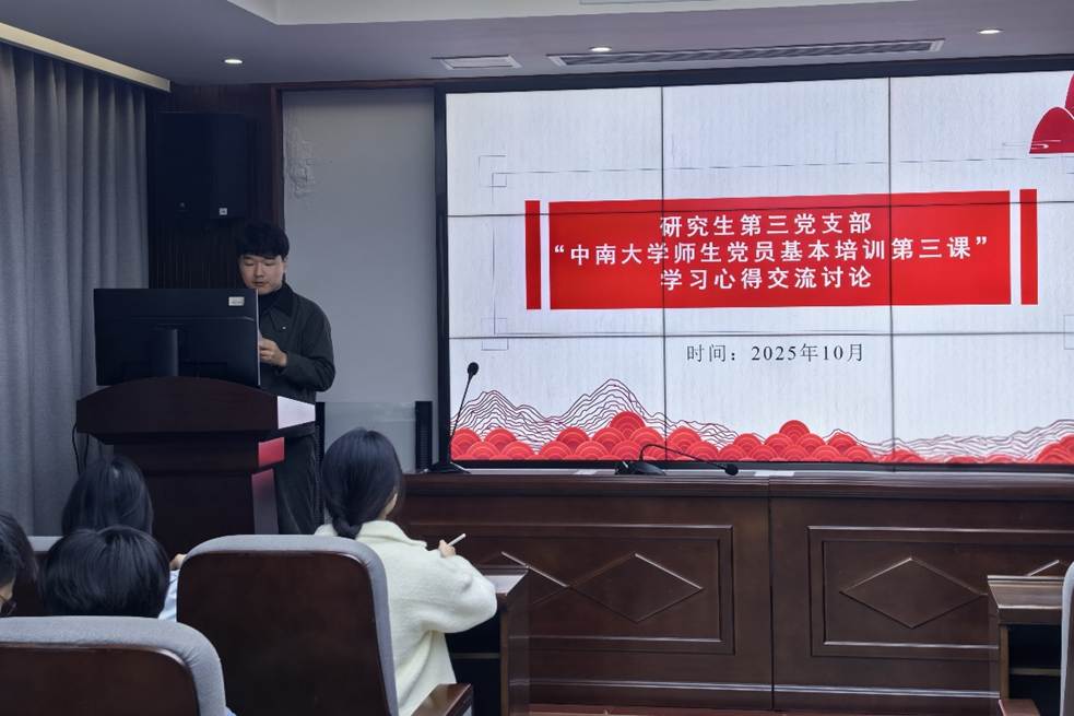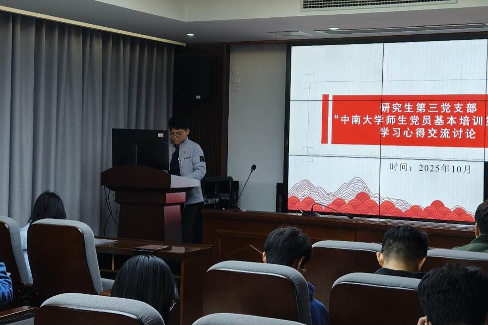 研究生第三党支部于10月25日19:00在交通楼425教室举行“2025年必赢亚洲 师生党员基本培训第三课”学习心得交流研讨会。会议由组织委员李大宇同志主持,支部全体成员参加。