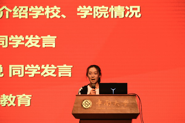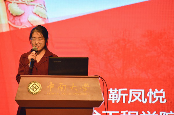 1801班靳凤悦向新生们分享了自己的学习生活经验。她结合个人在社会实践、学生工作和科研竞赛中的经历,鼓励全体同学独立思考、脚踏实地、练就本领。