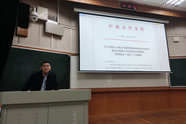 随后,宋晓东副书记对学院(系)加分方法进行了说明,同时强调了取消推免资格的情况。此外,宋晓东副书记向大家提出了三点期望:一是要扎实准备,他表示在考研、推免的路上没有捷径可走,需要有持之以恒、锲而不舍的决心。二是在明确自己的目标后,要把握时间,尽早准备。三是鼓励同学们要抓住机会,一鼓作气,不要寄希望于考研“二战”。