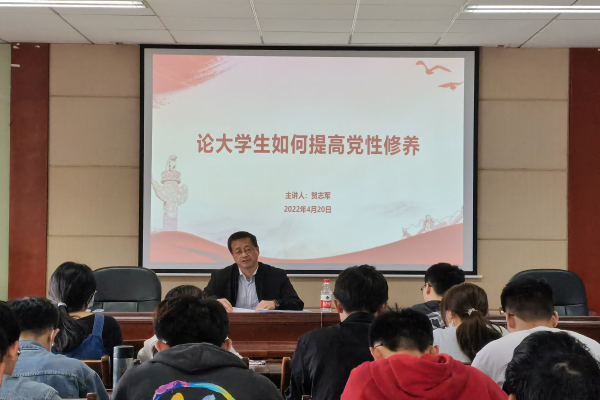 会议伊始,贺书记从党性修养的概念、新时代大学生加强党性修养的特点和途径等几个方面带来了生动而又有意义的讲解。贺书记提出,加强党性修养的方法,用四个字来概括,就是“学”“思”“践”“悟”。随后,贺书记结合党史学习,回顾了不同历史时期关于党性修养的成功经验,并指出新时代世界形势复杂,党性修养要突出“六最”,呼吁同志们通过“共产党员网”、“学院高校思政网”等进行学习。贺书记推荐同志们多看与习近平总书记相关的书籍,深入了解习近平总书记从而强化“两个维护”的行动自觉与政治担当。