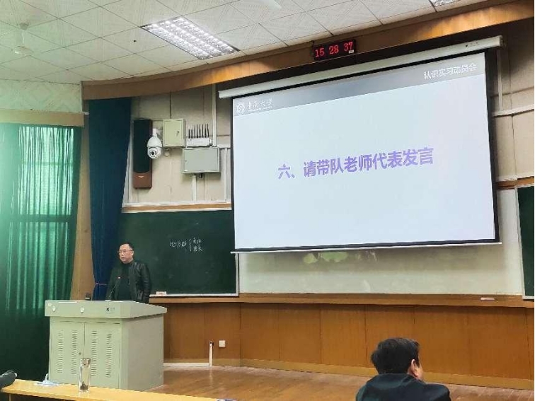 会议伊始,谢素超老师向同学们介绍了认识实习的目的,以及本次认识实习带队老师与同学的分组情况、实习时间安排、实习的纪律要求以及成绩评定标准等各项相关事务,并且特别强调了在疫情防控特殊时期,希望同学们在实习期间能够兼顾学习和自身的安全,坚持规范佩戴口罩。此外,谢老师提醒各小组负责人要及时查看通知,督促同学们独立按时完成实习日志和实习报告,认真对待本次认知实习。