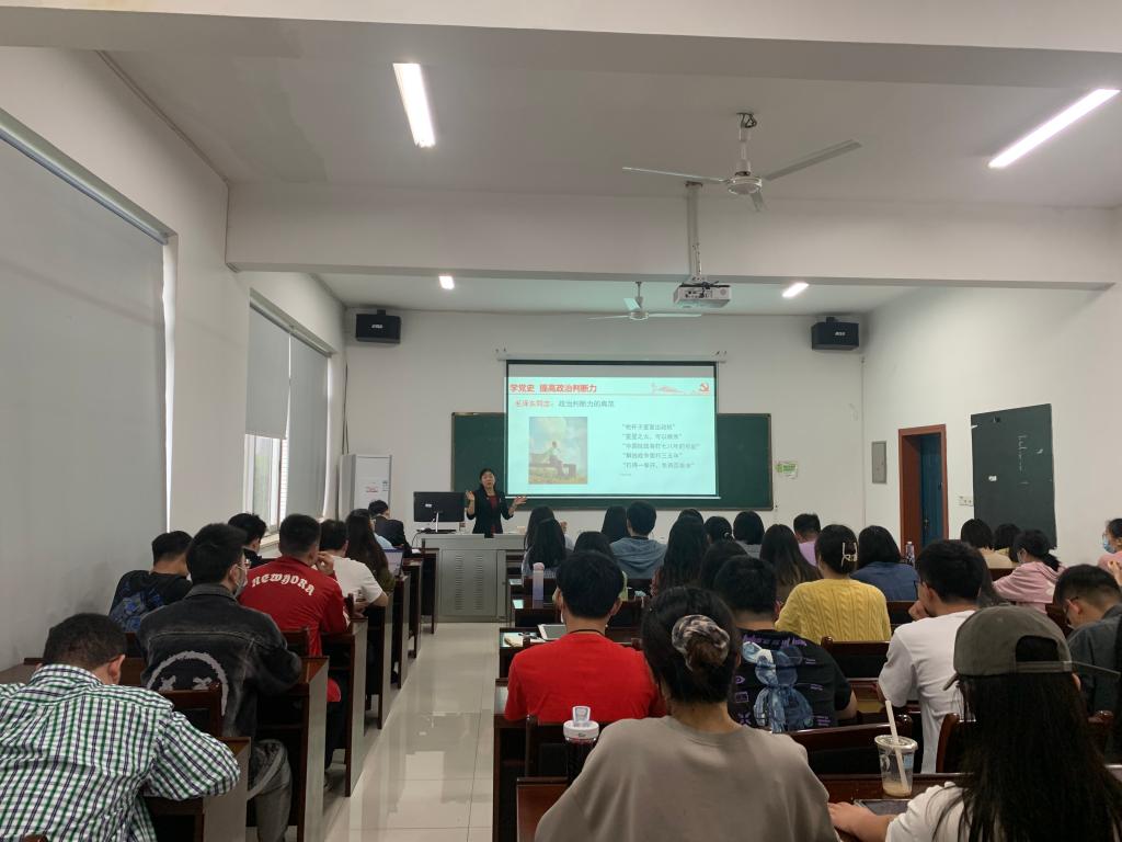 教工党支部书记叶峻青同志讲授“从百年党史中汲取‘政治三力’提高创新能力”主题党课。叶峻青同志引用《寻乌调查》、大别山斗争、红军长征等历史资料,引导同志们积极思考从而加深同志们对政治判断力、政治领悟力以及政治执行力的理解。从国家、学校和个人三个视角,结合多个方面,回答了为何创新和如何创新两个关键问题,发人深省。