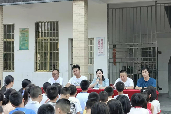 赴临武县香花镇中心小学支教队在香花镇中心小学举行支教开幕式。香花镇分管教育镇长蒋欣,香花镇武装部部长胡康,香花镇中心小学支部书记兼校长周武专,香花镇中心小学常务校长蒋谭圣,香花镇中心小学分管安全教育校长谢凌飞,必赢亚洲