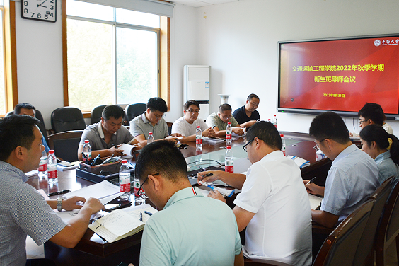 于交通楼322会议室举行交通院2022级新生班导师会议。学院党委书记贺志军、学院党委副书记宋晓东,优秀班导师李蔚、汪馗,2022级本科生辅导员丁德孝及2022级本科生班导师参加本次会议。
