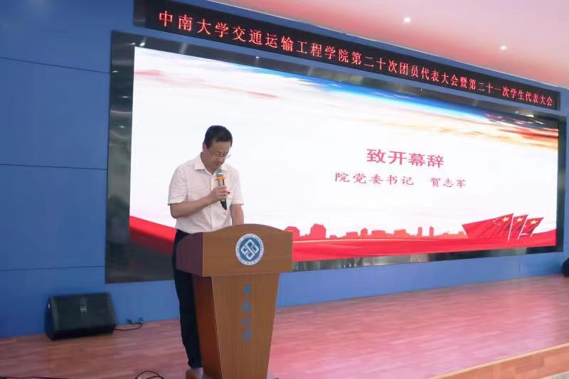 第二十次团员代表大会暨第二十一次学生代表大会在铁道校区立志厅顺利举行。学院党委书记贺志军,党委副书记宋晓东,副院长彭勇、韩锟、刘辉,学生工作办公室全体老师以及226名学生代表参加本次大会。会议由团委副书记郑繁简老师主持。