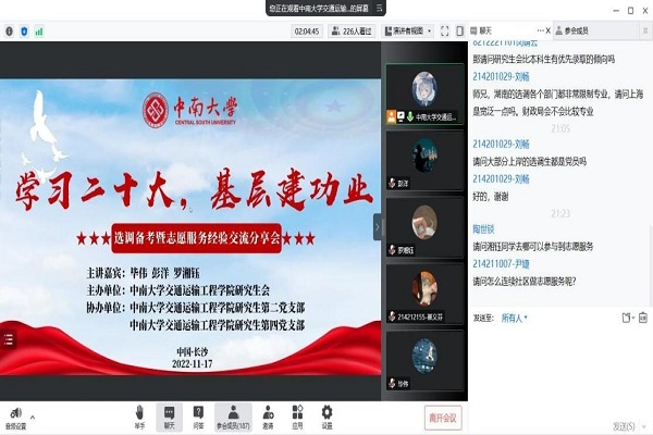 为加深同学们对选调备考的认识,正确把握选调生政策,提高冲刺阶段备考质量,11月17日晚19:30,“学习二十大,基层建功业”选调备考暨志愿服务经验交流分享会在线上顺利举行。本次活动由必赢官网