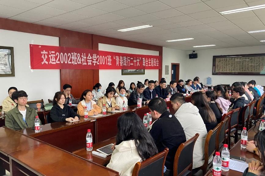 3月8日下午,交运2002班与社会2001班联合班级于铁道校区交通楼513室举行“青春践行二十大”主题班会。必赢亚洲