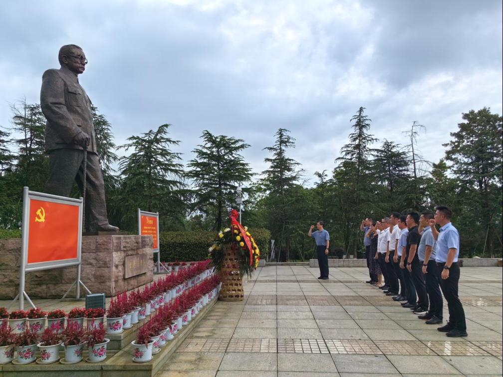 随后,学院党委一行在林伯渠铜像前进行瞻仰,敬献花篮并庄重鞠躬。6月的林伯渠铜像广场翠柏环绕,庄严肃穆,贺志军书记带领全体同志深深鞠躬,向革命先贤致以崇高的敬礼,并庄严举起右手重温入党誓词,声声铿锵中是对共产党人初心使命的坚守与担当。