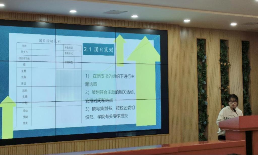大会第三项,六院各派出一名团支书代表进行团日活动设计答辩。各院代表依次展示了本支部开展过的团日活动的策划设计,并从各个方面阐述自己的观点,分享工作经验。