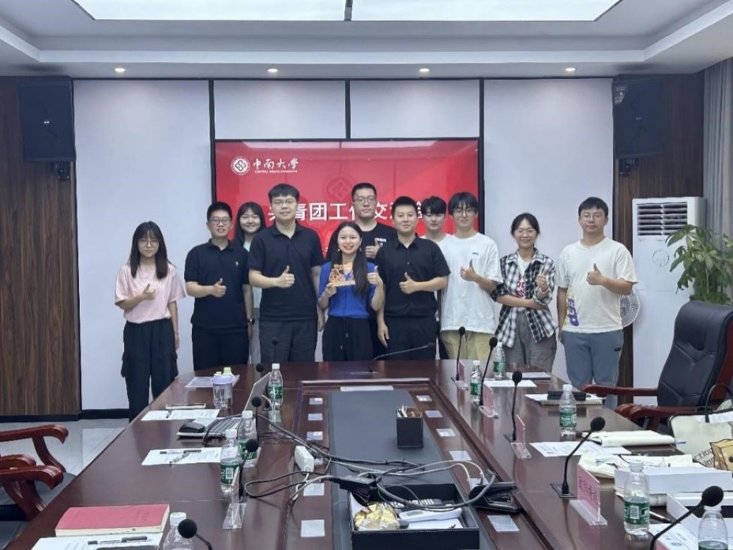 于交通楼119举行共青团工作交流会,电子信息学院团委书记欧阳旖旎、交通院团委书记张健、团委副书记郑繁简、两院团委主要学生干部参会。本次会议由张健老师主持。