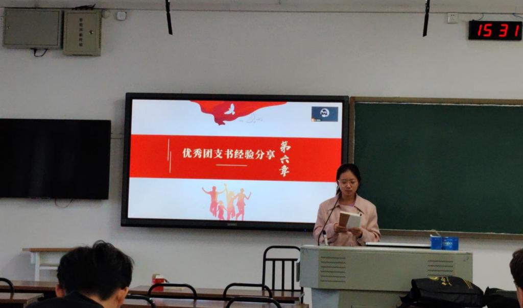 接下来,优秀团支书代表周晶晶同学分享了她的经验。从团日活动前期的冲优投票、各班委协作进行筹备工作到寻找目标一致的联谊团支部,确保团日活动的顺利开展。再到活动期间进行合理的人员分配并开展多种趣味项目,使每个同学可以参加自己感兴趣的活动,这在提高活动效率的同时也大大提高了同学们的积极性。她还建议团支书们可以创建一个自己的总结模板,这使在场团支书们受益匪浅。