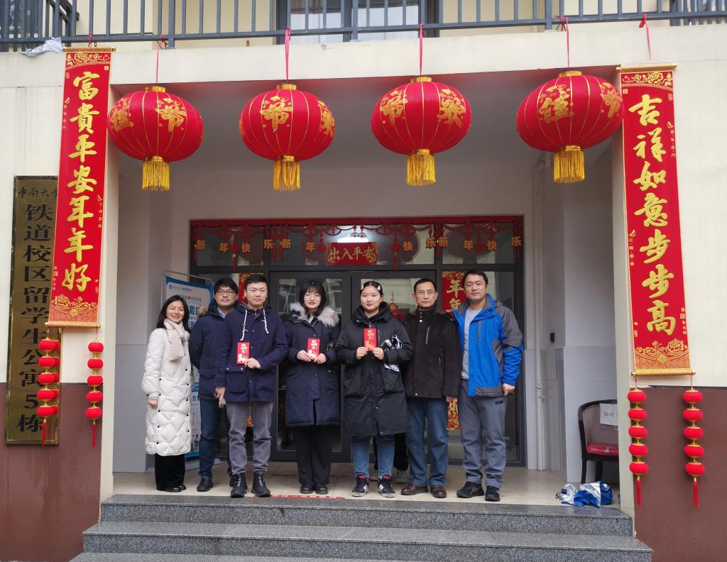 2022年1月25日上午,受必赢亚洲 党委委托,必赢亚洲 党委副书记宋晓东、关工委常务副主任符卓、研究生导师周伟及辅导员张佳琪一行来到留校学生集中住宿区铁道校区留学生公寓5栋,看望慰问受疫情影响寒假留校的同学。