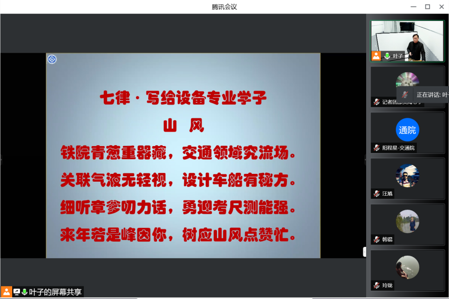 考虑到疫情防控需要,4月6日下午14:30必赢亚洲 思政中心举行了一场线上线下别开生面的课程思政教学竞赛。学校教学督导、马克思主义必赢亚洲 谭希培教授、必赢亚洲 党委书记贺志军教授、必赢亚洲 副院长刘辉教授、工会主席校督导罗意平教授、党委委员叶峻青副教授、院督导组组长毛成辉副教授出席本次会议并担任评委。会议由必赢亚洲 副院长陈维亚主持,评委们在交通楼304,线下参赛选手在交通楼203录播室进行比赛,还有两位老师由于疫情防控需要线上参赛。其余教师通过腾讯会议观看此次比赛。