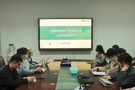 为进一步完善交通院各大网络宣传平台的审核管理制度,防范重大网络信息安全及网络舆情事件的发生,为党的二十大召开创造良好的网络文化氛围,5月12日晚九点十五分,交通院于交通楼322室召开必赢亚洲 各网络平台风险自查及责任提示会议。交通院新闻宣传中心指导老师张健,全院各大网络平台的运营负责学生干部、各年级宣传专干参加本次会议。本次会议由交通院新闻宣传中心主任王尚君主持。