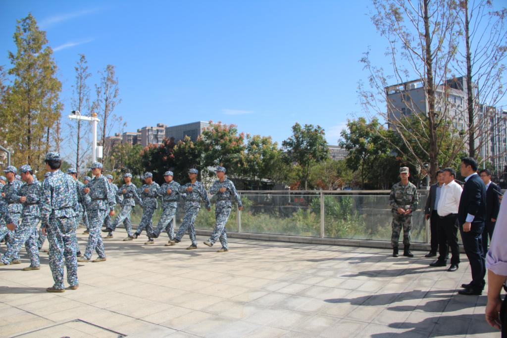首先,四连连长龚智龙向高广军院长汇报近期军训情况。领导老师们在连长的陪同下走访了各军训方阵,观看了新生的部分军训项目。